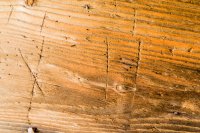 Schwere, ausgetretene Fußbohlen zeugen von der häufigen Nutzung nicht nur zum Wohnen, sondern auch von handwerklichen Arbeit, die Holzwände sind voll von Spuren dieser Arbeiten, und so mancher Handwerker hat Kerben in das Holz geschlagen und geritzt für seine Aufzeichnungen.